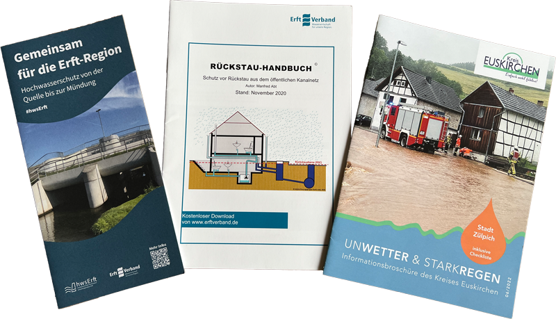 Broschüren des Erftverbandes und des Kreises EuskirchenBroschüren des Erftverbandes und des Kreises Euskirchen zum Thema HochwasserErfreulich, dass es vor diesem Hintergrund gelungen ist, für das Einzugsgebiet der Erft und unter der Federführung des Erftverbandes eine Arbeitsgemeinschaft – die s.g. “Hochwasserschutz-Kooperation Erft“ – einzurichten, der neben dem Erftverband zahlreiche Kommunen und Kreise des Verbandsgebietes als Projektpartner angehören.