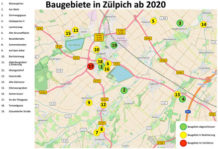 Baugebiete bringen Zuzug und verhindern Wegzug. Nach allen demografischen Gutachten würde Zülpich ohne Baugebiete in wenigen Jahren hunderte Einwohner verlieren. Die realisierten Baugebiete stabilisieren und steigern die Einwohnerzahl, täuschen aber darüber hinweg, dass die demografische Schere zwischen Geburten und Todesfällen auseinanderklafft.