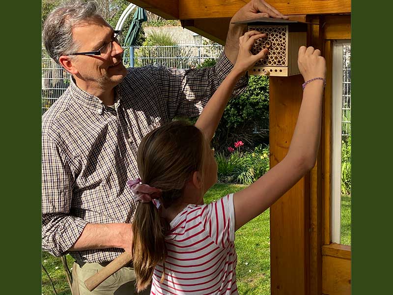 Durch die frühere Landwirtschaft haben wir das Glück, einen großen Garten zu haben. Englischen Rasen gibt es bei Hürtgens nicht, dafür aber die ein oder andere unaufgeräumte Ecke. Darüber hinaus spritzen wir in unserem Garten nichts, so dass sich Insekten, Igel, Vögel, Fledermäuse etc. doppelt freuen.