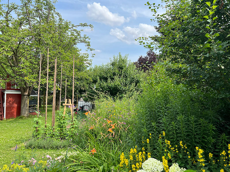 Das Vereinsleben kommt aus Zeitgründen inzwischen zu kurz. Dafür rückt mit zunehmendem Alter der Garten in den Vordergrund. Beim Garten schätze ich die gemeinsame Zeit mit der Familie an der frischen Luft. Ich mag den grünen Rückzugsort, wo Selbstgepflanztes wächst und gedeiht und freue mich jedes Jahr aufs Neue auf die Ernte von Obst und Gemüse. So wissen unsere Töchter von klein auf, wie Kartoffeln, Erbsen, Bohnen, Tomaten, Kohlrabi, Kräuter usw. wachsen.