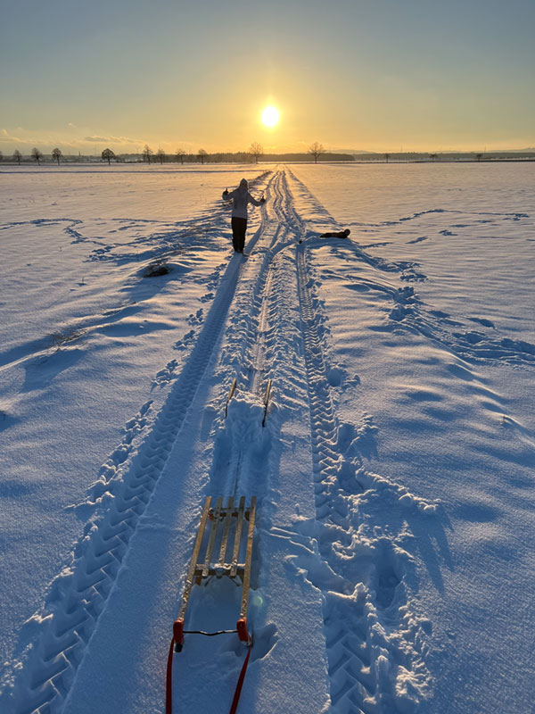 Als Erinnerung an die frühere Landwirtschaft behalten wir unseren Deutz D 15. Unsere Kinder würden sonst auch Protest einlegen! So ein alter Deutz springt ja nicht immer sofort und dann auch nicht wirklich geräuscharm an. Aber wenn er anspringt, freut sich doch die ein oder andere über eine kleine Spritztour – vor allem im Winter bei Schnee.